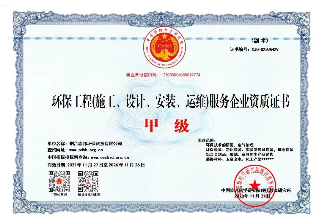 環(huán)保工程(施工、設計、安裝、運維)服務企業(yè)資質證書